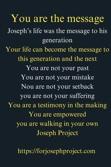 The Joseph Project is not a product of theory; it is born from experience. It’s a collection of lessons forged in real-life fires, guided by Scripture, and rooted in grace This is your invitation—not just to read about Joseph’s journey, but to reflect on your own. Where have you felt abandoned? Where are you being tested? What has life taken from you and what is God building in you through it? Joseph’s story proves one unshakable truth: your story isn’t over. The pit is real. The prison is hard. But the palace still waits. And God is with you every step of the way. Let the journey begin